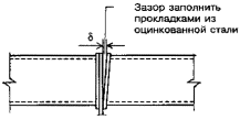 гибки увеличивают на коэффициент, равный 9.4 Для деталей, применяемых в конструкциях I группы согласно СНиП II-23-81*, величины допустимых минимальных радиусов гибки для сталей соответствующей прочности увеличивают в 1,3 раза. 9.5 При гибке по радиусу готовые детали должны удовлетворять следующим требованиям: - зазор между поверхностью детали и шаблоном на длине шаблона 1 м не должен превышать 2 мм; - смещение кромок поперечного сечения профильных деталей не должно превышать трехкратной величины максимальных допусков для соответствующего вида проката. 9.6 Допускается подача на сборку деталей, не соответствующих требованиям 7.5, с последующей калибровкой, подгибкой и правкой в процессе сборки. 9.7 Допускается производить гибку по радиусу в кондукторах с применением местного нагрева и проковки нагретых мест. Этот метод следует применять при подгибке и правке деталей из профильного проката. При выполнении данных видов операций необходимо соблюдать следующие правила: - стали с нормативным пределом текучести до 350 МПа включительно следует нагревать до температуры 900 - 1000 °С; - стали, поставляемые в нормализованном состоянии, следует нагревать до температуры 900 - 950 °С; - при гибке и правке стали всех классов прочности с местным нагревом проковка должна заканчиваться при температуре не ниже 700 °С. 9.8 При гибке на вальцах листовых деталей, имеющих сварные стыки толщиной 16 мм и более, усиление сварных швов должно быть снято или быть не более 2 мм. 9.9 Гибку в угол необходимо производить на гибочных прессах и в штампах. При гибке в угол для сталей с нормативным пределом текучести до 350 МПа минимальный внутренний радиус должен быть не менее 1,2 толщины для конструкций III и IV групп и не менее 2,5 толщины для конструкций I и II групп. При гибке в угол кромки деталей из сталей с нормативным пределом текучести более 275 МПа, образованные ножевой резкой и расположенные перпендикулярно линии гиба, должны быть обработаны в зоне линии гиба абразивным кругом. Гибка в угол деталей из сталей с нормативным пределом текучести более 350 МПа недопустима. 9.10 При изготовлении на предприятии стандартных гнутых профилей величины предельно допустимых отклонений геометрических размеров формы не должны более чем в 2 раза превышать требования стандартов на данные виды профилей. 9.11 Прочие гнутые детали должны соответствовать следующим требованиям: - отклонение линии гиба от проектного положения не более 2 мм; - тангенс угла загиба не должен отличаться от проектного более чем на 0,01. 9.12 Контроль геометрических размеров гнутых деталей следует выполнять мерительным инструментом согласно 6.1 и специально изготовленными шаблонами. 10 МАРКИРОВКА ДЕТАЛЕЙ10.1 Маркировку деталей необходимо наносить несмываемой краской с указанием номера заказа, номера чертежа и детали. Допускается маркировать краской одну контрольную деталь, остальные детали маркировать мелом, а при хранении в стопах или контейнерах не маркировать. 10.2 На расчетных деталях ответственных конструкций по указанию проектной документации следует набивать клеймами номера плавок. Места расположения клейм плавок должны быть указаны в проектной документации. 11 СБОРКА КОНСТРУКЦИЙ ПОД СВАРКУ11.1 Сборку конструкций, подлежащих сварке, следует выполнять только из деталей, соответствующих требованиям разделов 3 - 8 настоящего СП