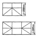 Примечание. Если масса груза или наружная высота ящика не совпадает с указанной в табл. 12, то толщину и ширину стоек принимают по ближайшей массе и ближайшей высоте. 1.7.7. На боковых и торцовых стенках ящиков типов I-3, I-4, II, III, IV, V, VIII-1, VIII-2, VIII-3 должны устанавливаться раскосы при внутренней высоте ящика свыше 600 до 2000 мм в соответствии с черт. 35, при внутренней высоте ящика более 2000 мм - в соответствии с черт. 36 приложения 6. Угол между раскосом и продольным брусом должен быть 20°-60°. Раскосы должны иметь двухсторонний срез, а в ящиках типов IV и V допускается односторонний срез под углом. Толщина раскосов должна быть не менее 2/3 толщины стойки. При морских перевозках должны устанавливаться перекрещивающиеся раскосы, один из которых должен быть изготовлен из цельного бруса, другой - из отдельных отрезков. Толщина перекрещивающихся раскосов не должна быть менее половины толщины стойки. Ширина раскосов принимается равной ширине стойки. 1.8. Конструкция и размеры деталей крышки ящиков типов I-3, I-4, II, III, IV, VII, VIII. 1.8.1. Крышка ящиков типов I-3, I-4 должна состоять из досок, планок, поперечных брусьев. Крышка ящиков типов II, III-2, IV, VIII-1, VIII-2, VIII-4 должна состоять из досок, продольных и поперечных брусьев. Доски обшивки крышки в ящиках указанных типов располагают по длине или ширине ящика. При расположении досок по длине ящика продольные брусья не устанавливают. Крышка ящиков типов III-1, VIII-3 должна состоять из досок обшивки и рамы с расстоянием между поперечными брусьями рамы от 500 до 800 мм, при этом толщина и ширина продольных и поперечных брусьев рамы должна быть равна толщине и ширине продольных брусьев боковой стенки. Крышка ящиков типа V должна состоять из досок обшивки и поперечных брусьев. Крышка ящиков типов VII и VIII-1 с облегченным каркасом должна быть рамной конструкции и состоять из поперечных и продольных брусьев рамы, поперечных брусьев крышки, листа фанеры или древесно-волокнистой плиты. Крышку ящиков типов II-1, III-2, IV-1, V-1 в зависимости от требований к упаковке конкретной продукции допускается изготовлять двухслойной, при этом доски верхнего и нижнего слоев располагают взаимно перпендикулярно, толщина досок каждого слоя принимается равной толщине досок обшивки, продольные брусья не устанавливаются. Допускается в ящиках типов VIII-1 - VIII-4 крышка рамной конструкции. Толщина фанеры и древесно-волокнистой плиты на крышке должна быть равна толщине фанеры и древесно-волокнистой плиты на боковых и торцовых щитах. Толщина и ширина деталей рамы должны быть равны толщине и ширине деталей каркаса, определяемых по табл. 5-6. Расстояние между поперечными деталями рамы не должно быть более 500 мм. Допускается в ящиках типа VIII-1 с облегченным каркасом изготовлять крышку из досок, листового материала и поперечных брусьев, толщина досок в этом случае должна быть не менее 16 мм, листового материала - 3-4 мм. Допускается крышку облегченных ящиков типа VIII-4 для груза массой до 5000 кг изготовлять из досок и поперечных брусьев сечением 25´100 мм, обшивки из фанеры толщиной 3-4 мм. Расстояние между досками не должно превышать 400 мм. 1.8.2. Основные поперечные брусья крышки должны устанавливаться между верхними продольными брусьями боковых стенок в местах прохождения строп симметрично центру массы или местам строповки на расстоянии X, мм, вычисляемом по формуле
