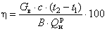 где t2 - температура воды на выходе из аппарата, °С; t1 - температура воды на входе в аппарат, °С. Измерение температуры воды на входе и выходе из аппарата следует проводить через каждые 15 мин. 8.3.11 Коэффициент полезного действия η1 в процентах (4.1.11) аппаратов, выполняющих функцию отопления, (класса 2), следует определять по формуле