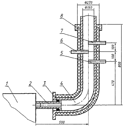 1 - аппарат; 2 - переходник; 3 - уплотнитель; 4 - труба; 5 - пробоотборник; 6 - термометр; 7 - трубка для измерения разрежения; 8 - крышка Рисунок 2 - Труба термоизолированная для выполнения измерений Примечание - Установку термометра (поз. 6) следует проводить под углом 45° к вертикальной оси трубы 8.3.20 Содержание вредных веществ в атмосферном воздухе (6.2) следует определять по ГОСТ 12.1.005. 8.4 Правила оформления результатов контроля 8.4.1 Результаты приемо-сдаточных, периодических и типовых испытаний оформляют протоколом, в котором, как правило, указывают: - изготовителя аппаратов; - заводские номера аппаратов; - перечень представленной с аппаратом документации; - вид топлива, на котором проводились испытания; - условия и методы испытаний; - обозначение настоящего стандарта и нормируемые значения; - результаты испытаний; - выводы; - дату испытаний. 8.4.2 Результаты испытаний по 4.1.6, 4.1.7 оформляются протоколом в соответствии с ГОСТ 27.410. 8.4.3 Результаты сертификационных испытаний оформляются в соответствии с требованиями принятой системы сертификации. 8.5 Допустимая погрешность контроля 8.5.1 Расчеты по формулам (1) - (16) проводят с точностью до второго десятичного знака с последующим округлением до первого десятичного знака. Расчет по формуле (17) проводят до третьего десятичного знака с последующим округлением до второго десятичного знака. 8.5.2 Испытания по 8.3.5, 8.3.10, 8.3.11, 8.3.12, 8.3.19 должны дублироваться не менее трех раз; за окончательный результат испытания принимают среднее арифметическое значение. При расхождении результатов дублируемых опытов по 8.3.5, 8.3.10, 8.3.11, 8.3.12 более чем на 2 %, а по 8.3.19 более чем на 20 %, испытания следует повторить. Результаты повторных испытаний являются окончательными. 8.5.3 Метод обработки результатов наблюдений и оценка погрешности результатов - по ГОСТ 8.207. 9 Транспортирование и хранение9.1 Транспортирование 9.1.1 Упакованные аппараты должны транспортироваться всеми видами транспорта в соответствии с правилами перевозки грузов, действующими на транспорте данного вида. Транспортные средства должны быть закрытыми. 9.1.2 При транспортировании железнодорожным транспортом размещение и крепление упакованных аппаратов должно осуществляться согласно «Техническим условиям погрузки и крепления грузов», утвержденным Министерством путей сообщения. Допускается упакованные аппараты формировать в пакеты по ГОСТ 26663. Параметры и размеры пакетов - по ГОСТ 24597. Аппараты, сформированные в пакеты, устанавливают на плоские поддоны по ГОСТ 9078 грузоподъемностью не более 1 т, скрепляют по ГОСТ 21650 стальной лентой по одному из следующих стандартов: ГОСТ 3560, ГОСТ 6009, ГОСТ 503. 9.1.3 Транспортирование аппаратов по суше - по условиям хранения 5 по ГОСТ 15150, при морских перевозках в трюмах - по условиям хранения 3 по ГОСТ 15150; на самолетах - по условиям хранения 8 по ГОСТ 15150. 9.2 Хранение 9.2.1 Упакованные аппараты хранят по условиям хранения 2 по ГОСТ 15150. 10 Указания по эксплуатации10.1 Аппараты следует использовать для отопления помещений, горячего водоснабжения (для хозяйственных нужд: мытье посуды, стирка, купание и т.п.), приготовления пищи. 10.2 Аппарат должен быть установлен на основу из негорючих материалов на расстоянии не менее 500 мм до сгораемых конструкций. 10.3 Пол из горючих и трудно горючих материалов под дверкой камеры сгорания должен быть защищен стальным листом ра