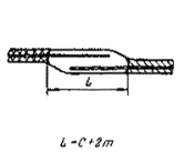 где 7.5.1.12. Испытание раструбных соединений производят: а) на трубчатых образцах длиной (235+L)±1 мм, сваренных с помощью муфты (рис. 2, поз. а), на сдвиг растяжением при наружном диаметре труб до 50 мм; б) на кольцевых образцах высотой h, равной половине глубины раструба l, вырезаемых из раструбного соединения трубы c соединительной деталью (рис. 2, поз. б), на сдвиг сжатием по схеме рис. 3 при наружном диаметре труб 50 мм и более. 7.5.1.13. Качество сварного раструбного соединения считается удовлетворительным: а) если при испытании трубчатых образцов все разрушения происходили по основному материалу трубы или соединительной детали; б) если при испытании кольцевых образцов на сдвиг разрушающее напряжение для ПВД составило не менее 8 МПа (80 кгс/см2). Разрушающее напряжение при сдвиге определяется по формуле