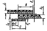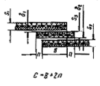 (Справочное) СВАРКА КОНТАКТНАЯ ТЕПЛОВАЯ АРМИРОВАННЫХ ПЛЕНОК. ШВЫ СВАРНЫХ СОЕДИНЕНИЙ. ОСНОВНЫЕ ТИПЫ И КОНСТРУКТИВНЫЕ ЭЛЕМЕНТЫ 1. Настоящие типовые решения распространяются на швы сварных соединений деталей и конструкций из армированных пленок толщиной 0,500-1,500 мм с двусторонним и односторонним нанесением термопластичного покрытия из поливинилхлорида полиамида, полиэтилена, полипропилена и других термопластов, выполненных методом прессовой контактной тепловой сварки. 2. Типовые решения устанавливают основные типы швов сварных соединений, а также конструктивные элементы подготовленных кромок свариваемых деталей и выполненных швов. З. Типовые решения не распространяются на основные типы и конструктивные элементы швов сварных соединений, выполняемых другими способами сварки (ультразвуком, токами высокой частоты, экструдируемой присадкой, инфракрасным излучением и пр.). 4. Типовые решения распространяются на швы сварных соединений деталей и конструкций, выполненных из армированных термопластичных пленок как разнотолщинных. так и равнотолщинных. 5. Устанавливается следующее условное обозначение способа сварки: КТП (контактная тепловая прессовая). 6. Основные типы швов сварных соединений должны соответствовать, указанным в табл. 1. 7. Конструктивные элементы свариваемых деталей, их размеры, размеры выполненных швов и их предельные отклонения должны соответствовать указанным в табл. 2. 8. Типы швов и размеры конструктивных элементов должны определяться исходя из толщины материала, технических требований к соединениям, типа армировки и покровной термопластичной пленки. 9. Внешний вид сварного соединения должен отвечать следующим требованиям: кромки шва должны быть заплавлены слоем термопласта, который герметизирует шов и образует плавный переход к основному материалу (исключение составляют швы, не работающие в агрессивных средах, тип Н2); на поверхности шва и в околошовной зоне не должно быть подрезов, вмятин и гофр свариваемого материала; сварное соединение не должно иметь посторонних включений. 10. Конструктивными элементами сварного шва (см. рисунок) являются: участок проплавления и галтель (усиление). 11. Основными параметрами конструктивных элементов сварного шва являются: толщина подготовленных кромок, ширина проплавленного участка и ширина нахлеста армировки. 12. Толщина шва - толщина проплавленного участка определяется толщиной свариваемых деталей и должна быть не менее одинарной толщины свариваемых пленок. 13. Ширина нахлестки определяется свойствами свариваемого материала, требованиями, предъявляемыми к конструкции и технологии сварки. 14. Накладки при сборке должны располагаться в соответствии с табл. 2. (Н3, Н4, Н7).