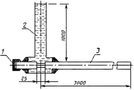 1 – вода; 2 - уплотнение; 3 - кабель Черт. 4 10.2. Подготовка к испытаниям 10.2.1. Подготовка образцов к испытаниям должна проводиться в соответствии с требованиями п. 1.2. 10.3. Проведение испытаний 10.3.1. Метод 10-А. 10.3.1.1. На образце кабеля, предназначенном для испытания, на длине не менее 3 м от конца должна быть вырезана по всему периметру на длине 25 мм оболочка или металлопластмассовая оболочка и покрытие поверх скрученного сердечника. Поверх скрученного сердечника должна быть установлена водонепроницаемая муфта так, чтобы перекрывался вырез оболочки и предотвращалось распространение воды между сердечником и другими элементами конструкции кабеля. Испытуемый образец должен быть расположен горизонтально. Конец образца кабеля, подготовленного к испытанию, должен подвергнуться действию водяного столба высотой 1 м в течение 24 ч при температуре (20±5) °C, если в нормативно-технической документации на кабели не указаны другие условия испытаний. Метод используется при разногласиях в оценке качества. 10.3.2. Метод 10-Б 10.3.2.1. Образец кабеля длиной не менее 3 м должен быть присоединен одним концом к испытательному устройству. Присоединение должно быть выполнено так, чтобы был свободный доступ воды из сосуда только внутрь сердечника кабеля. Затем испытательное устройство должно быть наполнено водой. В таком состоянии образец должен подвергнуться действию водяного столба высотой 1 м в течение 24 ч, если в нормативно-технической документации на кабели не указаны другие требования. 10.3.3. Образцы подвергают повторному испытанию, если замечено поступление воды между экраном и оболочкой. 10.3.4. Допускается применение других равноценных методов испытаний на герметичность, при этом метод испытаний должен быть указан в нормативно-технической документации на кабели. 10.4. Оценка результатов испытаний 10.4.1. Метод 10-А 10.4.1.1. Образец считается выдержавшим испытание, если при осмотре свободного конца кабеля в ультрафиолетовом свете не будет обнаружено следов красителя. 10.4.2. Метод 10-Б 10.4.2.1. Образец считается выдержавшим испытание, если на свободном конце кабеля не будет обнаружено просачивание воды. ПРИЛОЖЕНИЕ