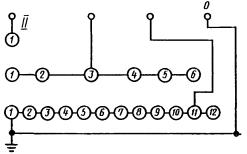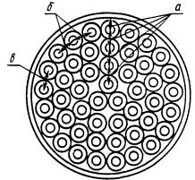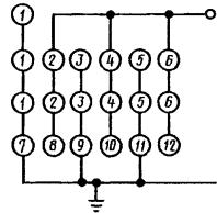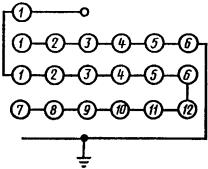 4.4. Обработка результатов 4.4.1. Кабельные изделия считают выдержавшими испытание по пп. 4.1 и 4.2, если при испытании не произошло пробоя изоляции, оболочки или защитного шланга. При возникновении пробоя на разделанном конце кабеля или в концевой муфте (заделке) испытуемое кабельное изделие должно быть вновь разделано или снабжено концевой муфтой (заделкой) и испытание должно быть проведено повторно в соответствии с требованиями настоящего стандарта. 4.4.2. Изоляцию, оболочку или защитный шланг считают выдержавшими испытание по п. 4.3, если после испытания в изоляции, оболочке или защитном шланге отсутствуют места пробоев. 5. ТРЕБОВАНИЯ БЕЗОПАСНОСТИ5.1. Электрические испытания кабельных изделий должны производиться в соответствии с действующими правилами технической эксплуатации электроустановок потребителей и правилами техники безопасности при эксплуатации электроустановок потребителей. 5.2. Испытательные установки должны быть выполнены в соответствии с ГОСТ 12.2.003-91, ГОСТ 12.2.007.0-75 и действующими правилами устройств электроустановок. (Измененная редакция, Изм. № 2). 5.3. Испытание напряжением на проход 5.3.1. Испытуемая изолированная жила должна быть заправлена в электрод и заземлена на отдающем и приемном устройствах в соответствии с требованиями нормативно-технической документации, утвержденной в установленном порядке. 5.3.2. Корпус испытательной установки должен быть заземлен. У отличных от звукочастотных дверцы высоковольтного блока должны иметь блокировку и запираться. 5.3.3. Испытательные установки должны быть оборудованы звуковой или световой сигнализацией, указывающей на пробой изоляции испытуемого изделия. 5.3.1 - 5.3.3. (Измененная редакция, Изм. № 2). 5.3.4. Ванночки для пайки токопроводящих жил должны быть надежно закреплены, заземлены и оборудованы местной вытяжной вентиляцией. 5.3.5. На рабочих местах у испытательных установок, отличных от звукочастотных, должны быть уложены диэлектрические коврики; работающие должны быть обеспечены средствами индивидуальной защиты и специальными изоляционными калибрами. 5.3.6. Не допускается появление влаги у испытательной установки на диэлектрическом коврике, а также на испытуемом изделии. 5.3.7. Испытательные установки, отличные от звукочастотных, должны иметь электроблокировку, которая отключает высоковольтный трансформатор, если токопроводящая жила не заземлена или оборвана. 5.3.8. К работе на испытательных установках, отличных от звукочастотных, допускаются лица, имеющие III квалификационную группу. 5.3.5 - 5.3.8. (Измененная редакция, Изм. № 2). ПРИЛОЖЕНИЕОбязательное ПОЯСНЕНИЯ К СХЕМАМ ИСПЫТАНИЯ ЭЛЕКТРИЧЕСКОЙ ИЗОЛЯЦИИ КАБЕЛЬНЫХ ИЗДЕЛИЙСхема 6 табл. 1 настоящего стандарта а, б, в - способы подключения, по которым изоляция жил подвергается испытаниям. 1. Конструктивная схема многожильного кабельного изделия, состоящего из неэкранированных жил, указана на черт. 1. 2. По способу подключения а испытанию подвергают изоляцию каждой жилы только в направлениях соседних жил в прилегающих друг к другу повивах. 3. По способу подключения б испытанию подвергают изоляцию каждой жилы только в направлениях соседних жил в пределах каждого повива. 4. При нечетном числе жил в повивах первая и последняя жилы в каждом повиве получают при нумерации нечетные номера и по способу подключения б оказываются не испытан