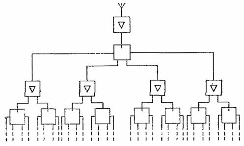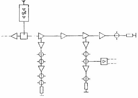 Примечание. Входами головной станции являются входные устройства для подключения фидеров приемных антенн (или специальных линий связи), выходом - выходное устройство для подключения линий распределительной сети.