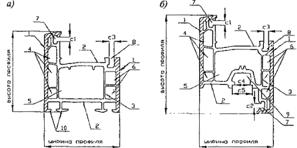 Толщину внутренних стенок профилей не нормируют. Примечание - Классификация профилей по толщине стенок не вносит различия в требования к качеству профилей или оконных конструкций из них. Толщина стенок является косвенной характеристикой формоустойчивости и прочности профилей. 4.5 По виду отделки лицевых поверхностей профили подразделяют на: - белого цвета, окрашенные в массе; - отделанные декоративной пленкой (ламинированные); - с коэкструдированным лицевым покрытием. класс 1 - приведенное сопротивление теплопередаче св. 0,80 м2×°С/Вт; класс 2 - » » » 0,70-0,79 м2×°С/Вт; класс 3 - » » » 0,60-0,69 м2×°С/Вт; класс 4 - » » » 0,50-0,59 м2×°С/Вт; класс 5 - » » » 0,40-0,49 м2×°С/Вт. Пример условного обозначения: Профиль ПВХ «Пласт» 3067 ГОСТ 30673-99. Профиль поливинилхлоридный, выпускаемый фирмой «Пласт», артикул по технической документации - номер 3067. При обозначении морозостойкого исполнения профилей к артикулу добавляют букву «М», например: Профиль ПВХ «Пласт» 3067 М ГОСТ 30673-99. В случае изготовления профилей, отделанных декоративной пленкой или с коэкструдированным покрытием, к обозначению профилей в сопроводительной документации и паспорте на изделия добавляют соответственно слова «декор» или «коэкструдированный» вместе с номером образца-эталона. При нанесении пленки или покрытия с одной стороны добавляют слово «односторонний». Допускается вводить в обозначение профилей дополнительную информацию, устанавливаемую в технической документации на системы профилей. В случае проведения экспортно-импортных операций условное обозначение профилей допускается уточнять в договоре на поставку продукции (в том числе вводить буквенно-цифровую или другую информацию). 5 Технические требования5.1 Общие требованияПрофили должны соответствовать требованиям настоящего стандарта и изготавливаться по конструкторской и технологической документации, утвержденной в установленном порядке. Состав рабочей документации на системы ПВХ профилей приведен в приложении Б. 5.2 Основные размеры, требования к допускам размеров и формы5.2.1 Профили должны поставляться в мерных отрезках длиной (6000 + 35) мм. По согласованию с потребителем допускается поставка профилей иной длины. 5.2.3 Предельные отклонения номинальных размеров высоты, ширины, а также функциональных размеров пазов для уплотняющих прокладок, штапиков, запирающих приборов и других размеров главных профилей приведены в таблице 2. Таблица 2
