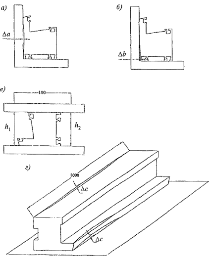 Требования к размерам доборных профилей и к предельным отклонениям от них устанавливают в технической документации. + 0,1 но не более - 0,3 мм (значение верхнего допуска является рекомендуемым). 5.2.5 Предельные отклонения от формы профилей (дефекты формы профилей приведены на рисунке 2) не должны быть более: - от прямолинейности лицевых стенок по поперечному сечению - ±0,3 мм на 100 мм (рисунок 2, а); - от перпендикулярности внешних стенок профилей коробок - 1 мм на 50 мм высоты профиля (рисунок 2, б); - от параллельности лицевых стенок по поперечному сечению профиля - 1 мм на 100 мм (рисунок 2, в); - от прямолинейности сторон профиля по длине - 1 мм на 1000 мм длины (рисунок 2, г). 5.3 Характеристики (свойства)5.3.1 Показатели физико-механических свойств профилей должны соответствовать требованиям, указанным в таблице 3. Таблица 3