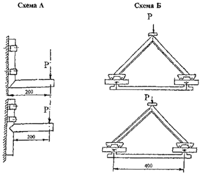 На нелицевых поверхностях изделий допускаются незначительные дефекты экструзии: полосы, риски и т.д. Показатели внешнего вида профилей: цвет, глянец, качество лицевых и нелицевых поверхностей (дефекты поверхности) - должны соответствовать цвету, глянцу и качеству поверхностей образцов-эталонов, согласованных в установленном порядке. После удаления защитной пленки внешний вид изделий должен соответствовать требованиям настоящего стандарта. 5.3.6 Цветовая (колориметрическая) характеристика профилей должна лежать в диапазоне: L³90; -3,0<а<3,0; -1,0<b<5,0. При этом отклонения от номинальных значений цветовых характеристик профилей, установленных в технической документации изготовителя (или образцами-эталонами), не должны превышать: L< 1,0; a£0,5; b£1,0; Eab£1,3. Предельные отклонения номинальных цветовых характеристик доборных профилей, невидимых при эксплуатации изделий, допускается устанавливать по согласованию изготовителя с потребителем. Примечание - Требования настоящего пункта являются обязательными с 1.07.2001 г. 5.3.7 Профили должны быть долговечными (стойкими к длительным климатическим воздействиям). Долговечность профилей должна быть не менее 40 условных лет эксплуатации. До 01.07.2002 г. значение показателя долговечности - 20 условных лет эксплуатации. по схеме А рисунка 4, не менее: по схеме Б рисунка 4, не менее: Расчетные значения прочности угловых соединений для профилей конкретных сечений устанавливают в технической документации изготовителя. Примечание - Требования к прочности сварных соединений профилей классов В и С устанавливают в нормативной и технической документации на конкретные виды изделий этих классов. 5.3.10 Значения показателя приведенного сопротивления теплопередаче комбинации профилей, предназначенных для эксплуатации в отапливаемых помещениях, составляют (0,40-0,90) м2×°С/Вт в зависимости от числа, расположения и размера камер. Профили при эксплуатации и хранении не должны оказывать вредного влияния на организм человека. 5.4 Требования к сырью и материаламСырье и материалы, применяемые для изготовления профилей, должны отвечать требованиям стандартов, технических условий, технических свидетельств и контрактов на поставку. Контролируемые требования к сырью и материалам, а также к технологической композиции устанавливают в технологическом регламенте. Допускается использование вторичного поливинилхлорида при условии соответствия физико-механических характеристик профилей требованиям настоящего стандарта. 5.5 МаркировкаМаркировка должна содержать: - номер экструдера, партии и (или) смены; - дату изготовления; - условное обозначение профилей по 4.7 (кроме слова «Профиль»). Допускается включать в маркировку дополнительные сведения согласно требованиям технической документации предприятия-изготовителя или условий потребителя. - условное обозначение профиля; - число профилей (шт.); - длину профилей (м); - дату упаковки; - номер упаковщика (приемщика). 6 Правила приемкиПартией считают число профилей одного артикула, изготовленных на одной технологической линии в объеме сменной выработки. Допускается принимать за партию меньшее число профилей, при этом объем партии устанавливают в технологической документации. Подтверждением приемки партии изделий техническим контролем предприятия-изготовителя является оформление док