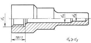 d1 - присоединительная резьба для термометра или термопреобразователя; d2 - присоединительная резьба гильзы; d3 - внутренний диаметр гильзы