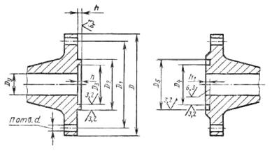 4. Предельные отклонения от номинальных размеров h и h1 - не более + 0,5 мм. 5. Фланцы арматуры должны изготовляться только с пазом, по требованию потребителя - с шипом.