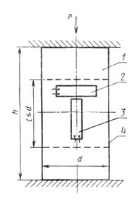Черт. 1 4.10. Наклейка тензорезисторов на боковую поверхность образца производится в соответствии с их эксплуатационной документацией. 4.11.