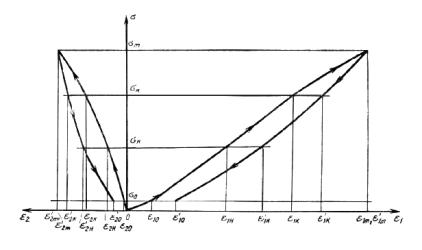 Деформации образца регистрируют не менее чем при десяти значениях напряжения