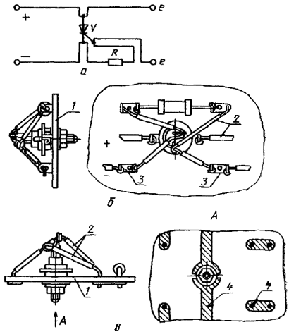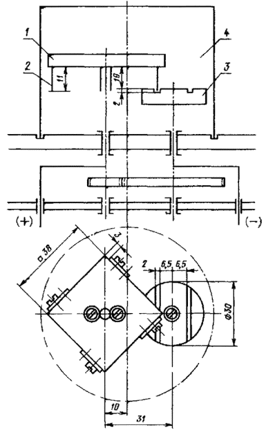 1 - диск для крепления подвижных контактов; 2 - вольфрамовая проволочка 3 - кадмиевый диск; 4 - взрывная камера