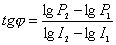 Угол наклона прямой P = f (I) или P = f (U) к оси абсцисс вычисляется по формуле