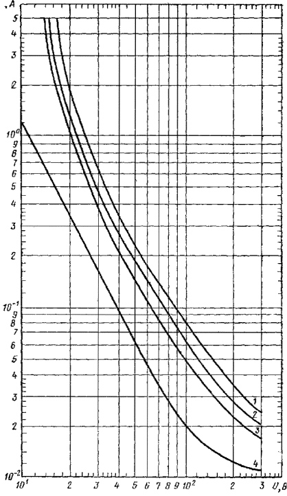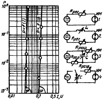 1.1. В исследуемой цепи постоянного или переменного тока при заданном постоянном напряжении (для омической цепи) или при постоянном напряжении и индуктивности (для индуктивной цепи) определяется ток, вызывающий воспламенение смеси с вероятностью (2¸5) 10-1 (1-я точка); 10-2¸10-1 (2-я точка) и 10-3¸10-2 (3-я точка).