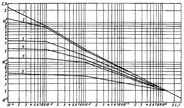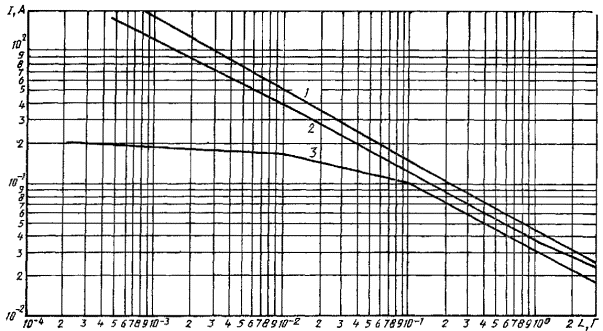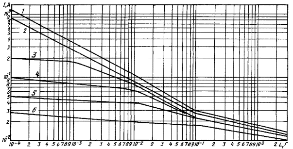 используя характеристики искробезопасности для индуктивной цепи, строят графики Iо* = f(Lэкв); точка пересечения графика с зависимостью I = f(L) при Е = Uст равна току Iо*;