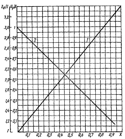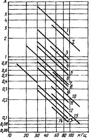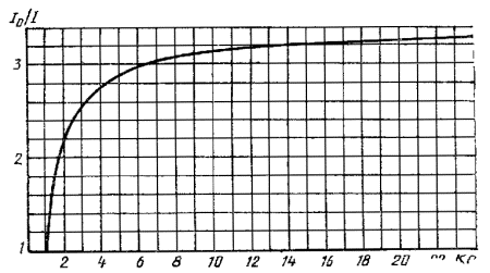 при помощи зависимостей кратности индуктивностей и токов от величины коэффициента а черт. 2 для данного значения К находят соответствующую кратность эквивалентной и действительной индуктивности В, а по кривой 19 черт. 2 для выбранных значений а определяют кратность токов