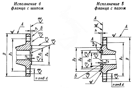 и размеры уплотнительных поверхностей