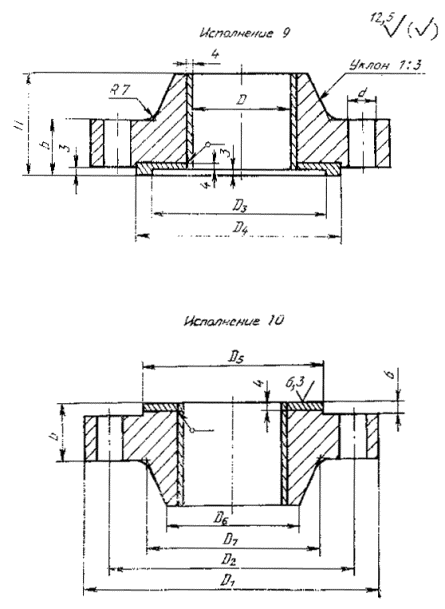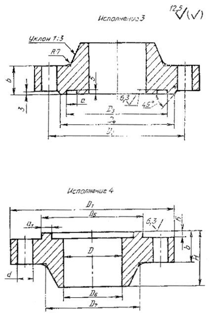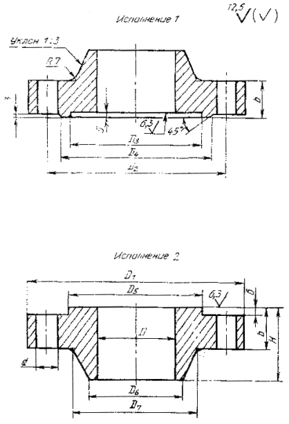 Примечания: 1. Массы фланцев рассчитаны при плотности 7,85 г/см3. 2. Размеры, указанные в скобках, применять не рекомендуется. |