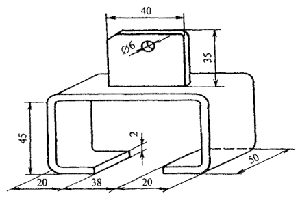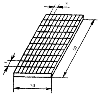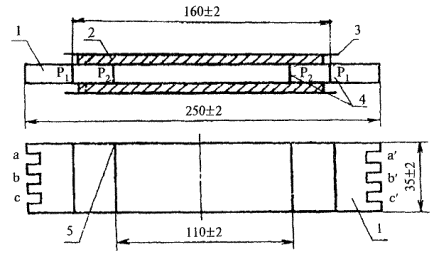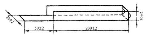 где m1 - масса тигля с герметизирующим материалом, предварительно выдержанным в сушильном шкафу, до прокаливания, г; m2 - масса тигля с герметизирующим материалом, не выдержанным в сушильном шкафу, до прокаливания, г; m3 - масса тигля с герметизирующим материалом, предварительно выдержанным в сушильном шкафу, после прокаливания, г; m4 - масса тигля с герметизирующим материалом, не выдержанным в сушильном шкафу, после прокаливания, г. Результат округляют до 1%. 3.8.5 Допускается определять миграцию пластификатора по методике, приведенной в приложении А. 3.9 Определение однородностиСущность метода заключается в визуальном осмотре поперечных срезов материала или изделия и в подсчете и измерении включений на поверхности срезов. 3.9.1 Средства контроля и вспомогательные устройства Скальпель или нож по ГОСТ 21240. Линейка измерительная по ГОСТ 427. Лампа накаливания мощностью 100 Вт. Лупа измерительная с погрешностью не более 0,5 мм по ГОСТ 25706. 3.9.2 Подготовка к проведению испытания Число образцов для испытаний должно быть не менее трех по одному образцу от каждой отобранной от партии пробы. Длина образца должна быть не менее 350 мм. На каждом образце испытываемого материала с помощью ножа или скальпеля, смоченного водой, выполняют не менее трех поперечных срезов на расстоянии (100±10) мм друг от друга, отступая от одного из краев на (50±5) мм. 3.9.3 Проведение испытания и обработка результатов испытания 3.9.3.1 Каждую поверхность среза испытываемого материала осматривают с помощью лупы, подсчитывают и измеряют включения. 3.9.3.2 Визуальный осмотр производят при освещении поверхности среза лампой накаливания, находящейся на расстоянии (500±25) мм от поверхности среза. Расстояние глаз контролера от поверхности среза - (300±25) мм. 3.9.3.3 Число и размер включений в каждом срезе одного образца должны соответствовать требованиям нормативного документа на конкретный вид материала. Число образцов, не соответствующих требованиям нормативных документов по однородности, должно быть не более одного из всех испытанных образцов. 3.10 Определение сопротивления текучести3.10.1 Средства испытания и вспомогательные устройства Лоток из белой жести толщиной 0,8 - 1,0 мм (рисунок 10). Рисунок 10 Шкаф электрический сушильный, обеспечивающий поддержание температуры в диапазоне 50 - 100°С. Нож или скальпель по ГОСТ 21240. Брусок металлический размером [(30´30´20)±2] мм. Лупа измерительная с погрешностью не более 0,1 мм по ГОСТ 25706. Уровень УС 2-III по ГОСТ 9416. 3.10.2 Подготовка к проведению испытания 3.10.2.1 Испытания проводят на трех образцах. 3.10.2.2 Лоток заполняют герметизирующим материалом таким образом, чтобы материал немного выступал над верхними и торцевыми срезами боковых стенок, и выдерживают на воздухе при температуре (23±5)°С в горизонтальном положении не менее 3 ч, после чего выступающий герметизирующий материал срезают вровень с верхними и торцевыми срезами боковых стенок лотка. 3.10.3 Проведение испытания и обработка результатов испытания 3.10.3.1 Лоток с герметизирующим материалом устанавливают вертикально в сушильный шкаф выступающей частью вниз и выдерживают при температуре и времени, указанных в нормативном документе на конкретный вид герметизирующего материала. 3.10.3.2 По истечении заданного времени лоток с герметизирующим материалом выдерживают в горизонтальном положении на воздухе при температу