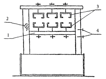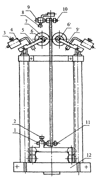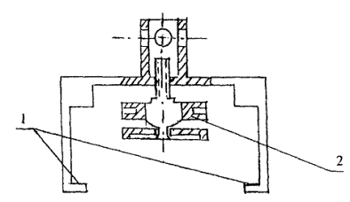 где Р - максимальная нагрузка при растяжении, Н; S - площадь поперечного сечения образца, м2. Результат округляют до 0,01 МПа. 3.2.4.2 Относительное удлинение при максимальной нагрузке e, %, определяют по формуле где h - расстояние между подложками до испытания, мм; Dl - удлинение образца при максимальной нагрузке, мм. Результат округляют до 1 %. 3.3 Определение относительного удлинения при минимальной температуре эксплуатации3.3.1 Средства испытания и вспомогательные устройства Средства испытания и вспомогательные устройства - по п. 3.2.1 со следующими дополнениями: машина разрывная, снабженная криокамерой; скорость движения подвижного захвата разрывной машины - (1,0±0,5) мм/мин. Кинокамера должна обеспечивать поддержание заданной температуры с погрешностью 1°С. 3.3.2 Подготовка к проведению испытания 3.3.2.1 Подготовка к проведению испытаний - по п. 3.2.2. Подготовленные образцы должны быть выдержаны в криокамере разрывной машины не менее 1 ч при температуре, указанной в нормативном документе на конкретный вид герметизирующего материала. 3.3.3 Проведение испытания 3.3.3.1 Удаляют ограничительные планки, помещают образцы в захваты разрывной машины и выдерживают в них не менее 15 мин, после чего проводят испытание образцов по п. 3.2.3.2, п. 3.2.3.3. 3.3.4 Обработка результатов испытания 3.3.4.1 Относительное удлинение при минимальной температуре эксплуатации e, %, вычисляют по формуле (2). 3.4 Определение стойкости к циклическим деформациям3.4.1 Средства испытания и вспомогательные устройства Машина усталостная малоцикловая, снабженная индикатором часового типа по ГОСТ 577 для установления амплитуды деформации, счетчиком числа циклов и нагружающим устройством, схема которого приведена на рисунке 4. Машина должна обеспечивать: - закрепление образцов в захватах, один из которых в процессе испытания неподвижен, а другой совершает возвратно-поступательное движение со скоростью (5,0±0,5) мм/ мин; - амплитуду деформации (2,00±0,02) мм; - время выдержки образцов в крайних положениях от 1 до 990 с. Захват стальной (рисунок 5). Линейка металлическая по ГОСТ 427. Трафарет по п. 3.2.1. Уровень УС2-111 по ГОСТ 9416. Штангенциркуль по ГОСТ 166. Подложка по п. 3.2.1. Планки по п. 3.2.1. Масло индустриальное по ГОСТ 20799. Мел по ГОСТ 12085 или другие виды наполнителей по действующим нормативным документам. 3.4.2 Подготовка к проведению испытания 3.4.2.1 Испытание проводят на трех образцах. 3.4.2.2 Подложку подготавливают в соответствии с нормативным документом на конкретный вид герметизирующего материала. 3.4.2.3 Подготовка образцов к испытанию - по п. 3.2.2.3. Подготовленные образцы выдерживают перед испытанием на воздухе при температуре (23 ± 5)°С не менее 3 ч. Рисунок 4 1 - подвижная траверса; 2 - индикатор; 3 - захваты; 4 - установочные винты Рисунок 5 1 - рабочая поверхность захвата; 2 - прижимной винт 3.4.2.4 Устанавливают время выдержки подвижной траверсы в крайнем верхнем, а затем крайнем нижнем положениях (600±5) с. 3.4.2.5 Устанавливают амплитуду деформации образцов (2,00±0,02) мм, для этого: - включают машину и устанавливают подвижную траверсу таким образом, чтобы расстояние между рабочими поверхностями захватов, измеряемое штангенциркулем, составляло (20±1) мм и фиксируют это положение установочным винтом, - устанавливают стрелку индикатора на 5,00 мм; - перемещают подвижную траверсу на (2,00±0,02) мм вниз и фиксируют это положение установочным винтом; - во