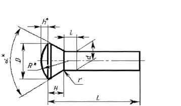 Постановлением Государственного комитета СССР по стандартам от 6 мая 1980 г. № 2009 срок введения установлен с 01.01.81 Проверен в 1985 г. Постановлением Госстандарта от 23.04.85 № 1138 срок действия продлен до 01.01.91 (Измененная редакция, Изм. № 1). Настоящий стандарт распространяется на заклепки с полупотайной головкой общемашиностроительного применения с диаметром стержня от 2 до 36 мм классов точности В и С. Стандарт полностью соответствует СТ СЭВ 1022-78. Заклепки с полупотайной головкой должны удовлетворять всем требованиям ГОСТ 10304-80 и требованиям, изложенным в соответствующих разделах настоящего стандарта. 1. РАЗМЕРЫ1.1. Размеры заклепок должны соответствовать указанным на чертеже и в табл. 1 и 2. * Размеры для справок. (Измененная редакция, Изм. № 1). Таблица 1 мм