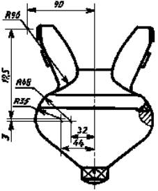 (Измененная редакция, Изм. №1) Черт. 1 1 - крышка; 2 - ниппель; 3 - корпус; 4 - штанга; 5 - шпиндель; 6 - седло; 7 - кольцо; 8 - -клапан ___________ * Размер для справок Примечание к черт. 1 и 2. Черт. 1 и 2 не определяют конструкцию гидрантов. Пример условного обозначения подземного пожарного гидранта высотой 500 мм в климатическом исполнении У для нужд народного хозяйства: Гидрант 500 ГОСТ 8220-85 в исполнении У для экспорта: Гидрант 500 УЭ ГОСТ 8220-85 в исполнении Т для экспорта: Гидрант 500 ТЭ ГОСТ 8220-85 2. Технические требования2.1. Гидранты должны изготовлять в соответствии с требованиями настоящего стандарта по рабочим чертежам, утвержденным в установленном порядке. Гидранты, предназначенные для экспорта, должны, кроме того, соответствовать требованиям, установленным в заказе-наряде внешнеторговой организации. 2.2. Основные размеры клапана должны соответствовать указанным на черт. 2. Черт. 2 2.3. Конструкция корпуса гидранта должна выдерживать пробное давление не менее 1,5 МПа (15 кгс/см2). 2.4. Гидрант в сборе должен обеспечивать: герметичность при гидравлическом давлении не менее 1 МПа (10 кгс/см2); открывание и закрывание ключом пожарной колонки при вращающем моменте не более 150 Н·м (15 кгс·м) и давлении воды не менее 1 МПа (10 кгс/см2). 2.5. Клапан гидранта и его привод должны выдерживать осевую нагрузку не менее 3·104 Н (3·103 кгс). 2.6. Количество оставшейся воды в гидранте после работы не должно быть более 100 см3. (Измененная редакция, Изм. № 1) 2.7. Диаметр сливного канала корпуса гидранта должен быть не менее 8 мм. По требованию потребителя, на выходе сливного канала должна быть трубная цилиндрическая резьба G1/2-B по ГОСТ 6357-81. 2.8. Наружная резьба ниппеля - специальная по приложению к ГОСТ 7499-71. 2.9. Резьба шпинделя и гайки клапана должна быть трапецеидальная по ГОСТ 24738-81. 2.10. Резьбы клапана должны быть метрическими по ГОСТ 24705-81 с полями допусков 8g и 7Н по ГОСТ 16093-81. 2.11. Корпус гидранта и клапан должны быть изготовлены из материала с механическими и антикоррозионными свойствами не ниже свойств чугуна марки СЧ 15 по ГОСТ 1412-85. (Измененная редакция, Изм. № 1) 2.12. Шпиндель гидрата должны изготовлять из стали с основными свойствами не ниже чем у стали марки 30Х13 по ГОСТ 5632-72. 2.13. Резьбовую часть ниппеля должны изготовлять из материалов с механическими и антикоррозионными свойствами не ниже чем у латуни марки ЛК1 по ГОСТ 1020-77 или у бронзы марки Бр О5Ц5С5 по ГОСТ 613-79. Конструкцией и креплением ниппеля гидранта должны исключаться возможность проворачивания ниппеля при навертывании пожарной колонки и обеспечиваться надежность и прочность соединения. 2.14. Кольцо клапана должно быть изготовлено из морозостойкой резины повышенной твердости по ГОСТ 7338-77. Допускается применение других уплотнительных материалов с механическими свойствами, не уступающими резине марки ТМКЩ по ГОСТ 7338-77. 2.15. Отливки гидранта - по ГОСТ 26358-84. Отклонения размеров и массы отливок из серого чугуна - по 3-му классу точности ГОСТ 26645-85. (Измененная редакция, Изм. № 1) 2.16. Седло клапана, посадочное место клапана должно быть изготовлено из материала с основными свойствами не ниже чем у латуни марки ЛК1 по ГОСТ 1020-77 или у бронзы марки Бр О5Ц5С5 по ГОСТ 613-79. Допускается получение седла клапана на корпусе гидранта с нанесением цинка на посадочное место. (Измененная редакция, Изм. № 1) 2.17. Лакокрасочное покрытие наружных поверхностей гидранта - по ГОС