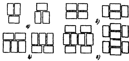 Стеллаж к автоматическому крану-штабелеру: Расстояние между рядами штабелей должно быть определено с учетом возможности установки в штабель, снятия тары со штабеля грузозахватными устройствами применяемых средств механизации и обеспечения необходимых противопожарных проходов и проездов. Высота штабеля должна быть определена отношением максимальной высоты штабеля к меньшей стороне основания тары: для неразборной тары - не более 6; для складной тары - не более 4,5. 1.2.18. Для обеспечения устойчивости формируемого штабеля и возможности подхвата штабелируемой строительной продукции грузозахватными приспособлениями под каждый ярус укладывают прокладки из досок или деревянных брусьев. В штабелях может храниться продукция, затаренная в обрешетки, ящики или спакетированная в сетчатые и ящичные поддоны. 1.2.19. Для обеспечения устойчивости штабелей могут быть применены различные способы укладки: прямая, перекрестная и обратная (рис.4). Обратная укладка заключается в том, что клетка выкладывается из определенного числа предметов, каждый ряд которых находится в обратном положении по отношению к нижнему. При таком способе каждый ряд можно укладывать тройками, четверками, пятерками и восьмерками штабелируемых строительных изделий (рис.5). 1.2.20. Штабель не должен иметь пустот, чтобы в случае хищения сразу можно было обнаружить недостачу. 1.2.21. Беспорядочное хранение материалов, изделий и оборудования на открытых площадках и складах недопустимо. 1.2.22. По окончании работы на складе дежурный в установленном порядке принимает на ответственное хранение как закрытые складские помещения, так и материалы, хранящиеся на открытых площадках, а утром, в начале работы, заведующий складом вновь принимает от охраны помещение склада и материалы открытого хранения. 1.2.23. Применение в строительстве материалов, изделий и конструкций, не имеющих сопроводительного документа (паспорта, сертификата, формуляра), подтверждающего соответствие их требованиям государственных стандартов или технических условий, а также товарного знака (заводской марки) на изделиях, запрещается. 1.2.24. Склады должны быть оснащены всеми необходимыми приспособлениями и средствами для перемещения грузов: роликовыми ломами, роликовыми трапами, скатами, слегами, тележками и т.д. Рис.