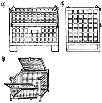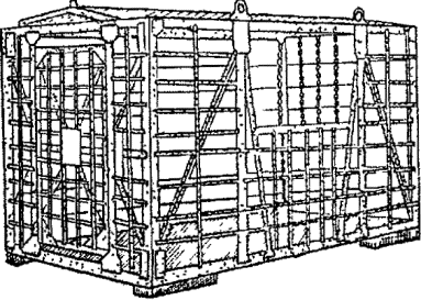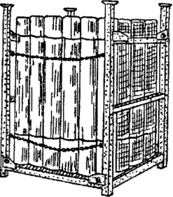 Рис. 13. Контейнер для транспортирования застекленных дверей и окон 6.4.9. Для изготовления погонажных изделий (наличников, плинтусов, галтелей, раскладок, досок для чистовых полов и поручней для металлических перил) применяют древесину хвойных пород - ели, пихты, кедра и лиственницы. 6.4.10. Продольная покоробленность, крыловатость и кривизна допускаются со стрелой прогиба не более 0,1% от длины деталей, а поперечная покоробленноеть - не более 2% от ширины деталей. 6.4.11. Лицевые поверхности деталей и сопрягаемые между собой поверхности должны быть чисто простроганы. Доски для чистовых полов с нижней стороны должны быть антисептированы, а остальные строганые погонажные изделия должны поступать от предприятия-поставщика. 6.4.12. При приемке строганые погонажные детали проверяются измерительными инструментами и шаблонами с точностью до 1 мм, а размеры паза, гребня и профиля - с точностью до 0,1 мм. 6.4.13. При отгрузке наличники, раскладки, плинтусы и галтели длиной 1,5 м упаковывают в пачки весом не более 40 кг, в каждой из которых должны быть детали одного типа и размера. Погрузка деталей навалом запрещается. 6.4.14. Детали следует хранить в закрытых помещениях или под навесами, защищенными от увлажнения (снег, косой дождь), в штабелях, в плотных пакетах с прокладками между ними. 6.4.15. Поступающие детали учитывают с точностью до 0,01 пог. м, а доски для чистовых полов - с точностью до 0,001 м3. Прирезанные наличники и поручни учитывают в штуках и погонных метрах. Площадь готовых деталей определяют по размерам после чистовой обработки; ширину досок для чистового пола измеряют без учета гребня. 6.6. Изделия деревянные для паркетных покрытий6.5.1. Паркетные покрытия подразделяют на паркетные доски, штучный и наклеенный на бумагу наборный паркет (мозаичный). 6.5.2. Паркетные доски выпускают длиной 1200, 1800 и 3000 мм, шириной 150 мм. Допускается поставка до 15% укороченных паркетных досок длиной от 600 до 1200 мм. Ширина паркетных планок - 20, 25, 30 мм. 6.5.3. Наборный паркет, наклеенный на бумагу, выпускается следующих размеров: 400´400 мм (ширина планок 20 или 25 мм), 480´480 мм (ширина планок 20 или 30 мм) и 600´600 мм (ширина планок 25 или 30 мм). Толщина планок - 8 мм, из древесины сосны и лиственницы - 12 мм. 6.5.4. Штучный паркет по ГОСТ 862.1-76 изготавливают длиной 150, 200, 250, 300, 400 мм, шириной 30, 35, 40, 45, 50, 55 и 60 мм; паркетные планки длиной 150 и 200 мм и шириной 30 и 35 мм могут поставляться в партии не более 15% от объема поставки. 6.5.5. На лицевых плоскостях и кромках паркетных планок допускаются отколы и отщепы глубиной до 0,3 мм, а на нелицевых кромках и сторонах - глубиной до 2 мм. На нелицевой плоскости планок всех видов паркета, а также на гребне штучного паркета допускается непрострожка до 50% площади соответствующей поверхности. Лицевые поверхности всех изделий должны быть ровными и гладкими. 6.5.6. Паркетные доски, наборный и штучный паркет должны быть упакованы в отдельные пачки весом не более 40 кг. Упаковка пачек должна производиться стальной лентой или проволокой. 6.5.7. Все виды паркета укладывают в пачки попарно, лицевой стороной друг к другу, отдельно по типам, размерам и породам древесины. Паркетные доски и штучный паркет укладывают гребнями наружу. В каждой пачке штучного паркета должно находиться одинаковое количество планок с левым и правым гребнями. 6.5.8. При отгрузке паркетные доски упаковываются стальной лентой или 