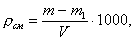 где т2 - масса чаши со стеклом и водой, г; m1 - масса чаши со стеклом без воды, г; rВ - плотность воды, принимаемая равной 1,0 г/см3. Для определения цены деления шкалы прибора наливают воду в чашу поромера, накрывают ее крышкой, затягивают накидные болты, закрывают сливной вентиль, и через воронку доливают воду немного выше уровня верхнего (нулевого) деления шкалы. Открыв сливной вентиль, устанавливают уровень воды на нулевом делении. Затем, подставив предварительно взвешенный с погрешностью не более 1,0 г стакан, открывают сливной вентиль, и сливают воду до отметки от 30 до 60 % шкалы водомерной трубки. Взвешивают стакан с водой с погрешностью не более 1 г. Цену деления шкалы прибора С вычисляют по формуле