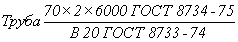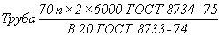70 мм, толщиной стенки 2,0 мм, длиной, кратной 1250 мм, из стали марки 20, с