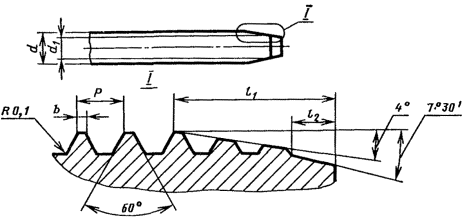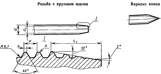 Постановлением Государственного комитета СССР по стандартам от 30 декабря 1980 г. № 6109 срок введения установлен с 01.01.82 Настоящий стандарт распространяется на самонарезающие винты для металла и пластмассы класса точности В с притупленными и заостренными концами. Требования настоящего стандарта являются обязательными. 1. РАЗМЕРЫ1.1. По форме и размерам самонарезающие винты должны соответствовать стандартам на конструкцию и размеры конкретных видов винтов. 1.2. Размеры резьбы и конца винта должны соответствовать указанным на черт. 1, 2 и в табл. 1, 2. (Измененная редакция, Изм. № 1, 2). 1.3. Схема построения условного обозначения самонарезающих винтов указана в обязательном приложении 1. Черт. 1 Таблица 1 мм