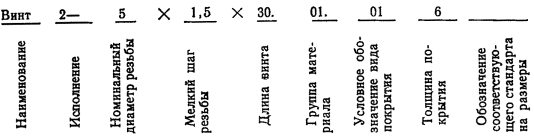 4.1., 4.2. (Измененная редакция, Изм. № 1, 2). 5. УПАКОВКА И МАРКИРОВКА5.1. Упаковка, маркировка, транспортирование и хранение - по ГОСТ 18160-72. (Новая редакция, Изм. № 2) ПРИЛОЖЕНИЕ 1Обязательное Схема построения условного обозначения винтов
