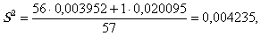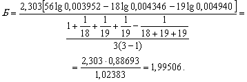 По формуле (8) определяем а1=3,19957-6338×2,1167×10-3=-10,21608. 3. Проверка гипотезы однородности дисперсий (п. 6.3). Определяем средневзвешенную