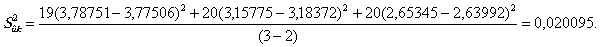 средневзвешенную дисперсию где fi=ni-1 (степень свободы данного режима);