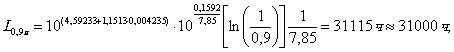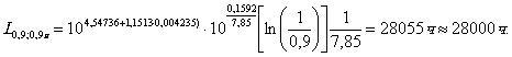 Определяем нижнюю доверительную границу среднелогарифмического ресурса для 90%-ной доверительной вероятности по формуле (26)