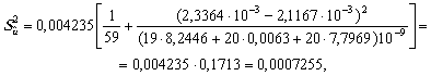 9. Определение нижних доверительных границ для ресурсов. Заданная доверительная вероятность Р*=90%. Определяем дисперсию средних значений линии регрессии (п. 6.6) для требуемой температуры по формулам (17) и (18),