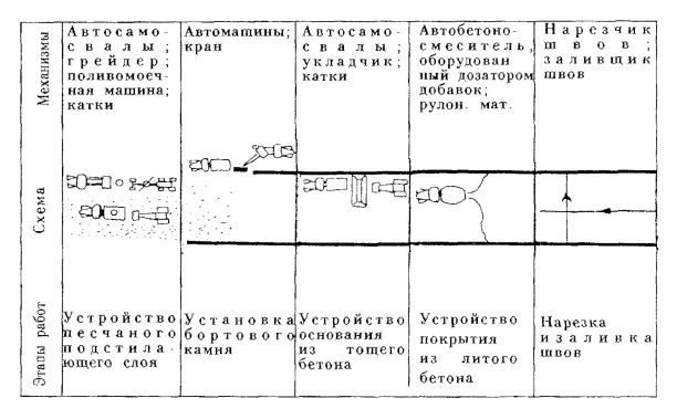 Рис. 3.3. Технологическая схема устройства покрытия из литых бетонных смесей на основании из тощего укатываемого бетона.