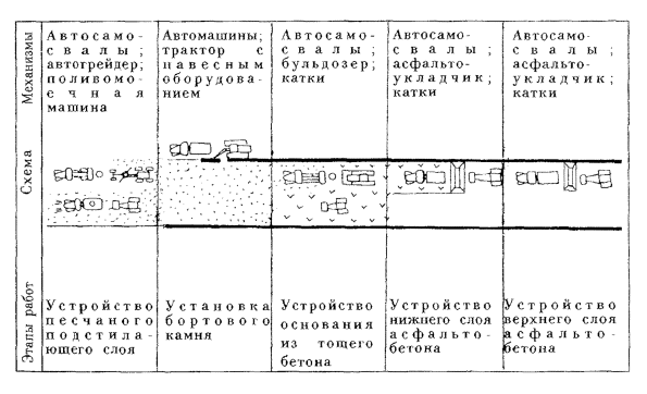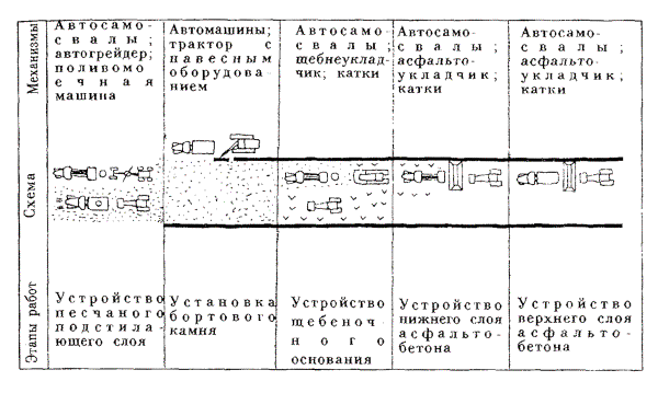Рис. 5.1. Технологическая схема устройства асфальтобетонного покрытия по основанию из щебеночных уплотняемых смесей.