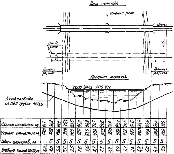 Рис. 2 Пример исполнения чертежа перехода трассы через водную преграду