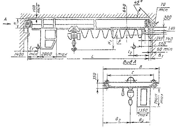 Кран типа 1 исполнения Б для пролетов от 4,5 до 16,5 м