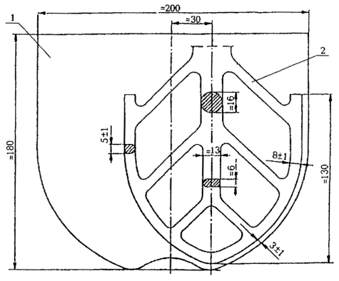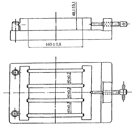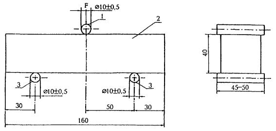 поверки упругости кольца Ле Шателье Рисунок 7 Бачок для кипячения, имеющий подставку для размещения колец Ле Шателье. Камера (шкаф) влажного хранения по 4.10. Штангенциркуль по ГОСТ 166. 7.2 Подготовка и проведение испытания 7.2.1 Кольца и пластинки перед началом испытания смазывают тонким слоем машинного масла. 7.2.2 Готовят цементное тесто нормальной густоты по 6.2.1. Кольца устанавливают на пластинки и наполняют в один прием цементным тестом с избытком, но без уплотнения или вибрации. При заполнении колец исключают случайное раскрытие прорези осторожным сдавливанием кольца пальцами или резиновой лентой. Избыток цементного теста срезают ножом, протертым влажной тканью, вровень с краями кольца. Для одного испытания заполняют два кольца из одного замеса цементного теста. 7.2.3 Кольца, заполненные цементным тестом по 7.2.2, накрывают сверху пластинками, на которые устанавливают пригруз, и помещают в камеру влажного хранения, где выдерживают в течение (24±0,5) ч. Допускается выдерживать кольца в воде в течение (24±0,5) ч при температуре (20±1)°С при условии получения одинаковых результатов. 7.2.4 После предварительного твердения по 7.2.3 кольца извлекают из камеры, измеряют штангенциркулем расстояние между концами индикаторных игл с точностью до 0,5 мм (начальное измерение), освобождают от пластинок и пригруза и помещают в бачок для кипячения индикаторными иглами вверх. Воду в бачке доводят до кипения за (30±5) мин и выдерживают кольца в кипящей воде в течение (180±5) мин. Уровень воды в бачке должен быть выше размещенных на подставке колец на 4-6 см в течение всего времени кипячения. После окончания кипячения кольца извлекают из воды, дают им остыть до температуры помещения, после чего измеряют расстояние между концами индикаторных игл (конечное измерение). 7.3 Обработка результатов 7.3.1 Вычисляют разность между значениями конечного и начального измерений для каждого кольца. 7.3.2 За расширение образцов в кольце Ле Шателье принимают среднеарифметическое значение результатов двух определений, вычисленных по 7.3.1. Результат вычисления округляют до 0,5 мм. 8 Определение прочности8.1 Средства контроля и вспомогательное оборудование Смеситель по 6.1, снабженный дозирующим устройством для подачи песка. Трехгнездовые разъемные формы размером 40´40´160 мм для изготовления образцов-балочек (рисунок 8). Конструкция форм должна обеспечивать возможность удаления из них отформованных образцов без повреждения. Формы должны быть изготовлены из материалов, обеспечивающих сохранение размеров и формы образцов. Продольные и поперечные стенки формы должны быть пронумерованы для удобства их сборки и при закреплении плотно прилегать друг к другу и к опорной плите, не допуская вытекания воды из формы. Опорная плита должна быть достаточно жесткой для предотвращения вторичных вибраций. Приспособления для разъема и чистки формы должны обеспечивать выполнение соответствующих операций без повреждения образцов и деталей формы. Насадка к формам высотой 20-40 мм с фиксаторами на наружных стенках, обеспечивающими правильную установку ее на форму. Предельное несовпадение внутренних стенок насадки и формы не должно быть более 1 мм. Пластинки для форм размером 210х185 мм, изготовленные из стекла толщиной 6 мм с шлифованными краями или другого водонепроницаемого материала. Приспособления дл