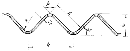 10.4. Приведенная толщина гофрированной пластины (черт. 54)