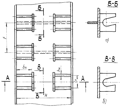 Черт. 22 4.5.3. Если кронштейны не связаны планками и ребра приварены к торцевой стенке под кронштейнами (черт. 22а),