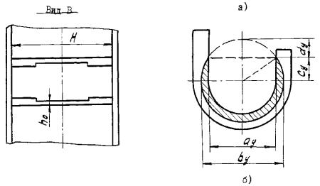 W1-1 - момент сопротивления волокон 1-1. 5.6. Верхняя накладка (черт. 33) 5.6.1. При усилении ослабленного сечения верхней штанги верхней накладкой длина прорези выбирается по условию