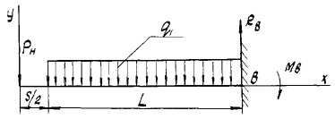 где К*=0,8 - коэффициент неполноты заделки Двухопорная штанга Черт. 29 Двухопорная штанга (для расчета группы болтов) Черт. 30 5.4.5. Усилие в i-том болте (черт. 26)