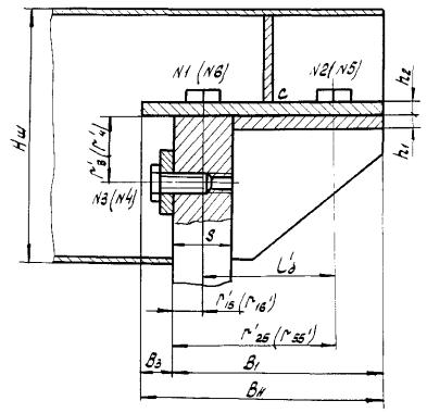 4.5. Толщина торцевой стенки hm 4.5.1. Если кронштейны связаны планками (черт. 20), то расчет ведется по п. 4.4. 4.5.2. Если кронштейны не связаны планками и ребра не приварены к торцевой стенке в зоне расположения кронштейна (см. черт. 22б).
