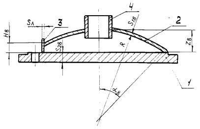 Критерий циклической прочности: - для непологих оболочек КРЫШКА 1 - плита; 2 - днище, 3 - перегородка, 4 - патрубок Черт. 44 ПЛИТА