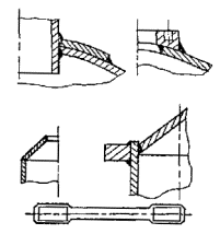 (Измененная редакция, Изм. № 1). 6.4. Коэффициенты запаса прочности по числу циклов nN = 10, по напряжениям nσ=2. 6.5. В случае соединения сталей с разными механическими характеристиками определяющей является сталь, дающая меньшие значения [σА] и [N]. (Введен дополнительно, Изм. № 1). ПРИЛОЖЕНИЕ 1Справочное ОПРЕДЕЛЕНИЕ УСЛОВНЫХ УПРУГИХ НАПРЯЖЕНИЙНиже приведены расчетные зависимости для определения наибольших упругих напряжений из условия напряженного состояния краевого эффекта в зонах сопряжения элементов сосудов и аппаратов. Зависимости получены методом строительной механики (метод сил) с использованием результатов и основных соотношений теории тонкостенных оболочек вращения и прикладной теории упругости. Зависимости получены для некоторых наиболее типичных узлов, когда сосуд или аппарат находится под действием внешних нагрузок (давление, температура). Приведенные расчетные зависимости не исключают возможности использования решений, полученных другими способами (и для других узлов и типов сопряжении элементов), содержащихся в специальной и справочной литературе. 1. Составные оболочки вращения под действием внутреннего давления 1.1. Наибольшие упругие напряжения, возникающие под действием внутреннего давления в узлах сопряжения элементов сосудов и аппаратов, составленных из оболочек вращения (табл. 1), определяют следующими вычислениями: а) определение вспомогательных безразмерных величин