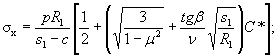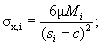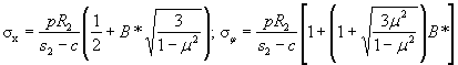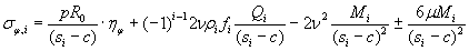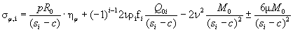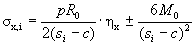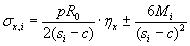 в) вычисление напряжений в крайних волокнах обечаек по линии их сопряжения с распорным кольцом (i= 1, 2)